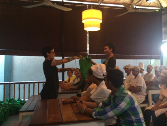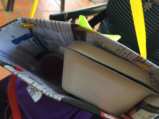 Nesa from JWOC teaches the students science with a strong focus on the environment and wanting to make changes to how we see plastic. She was happy to take a bit of food away in the biodegradable packaging that New Leaf Book Cafe supplied.